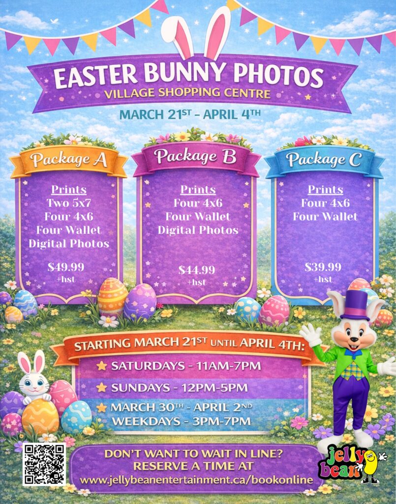 Easter Bunny Hours plus online bookings are now available at www.jellybeanentertainment.ca/bookonline